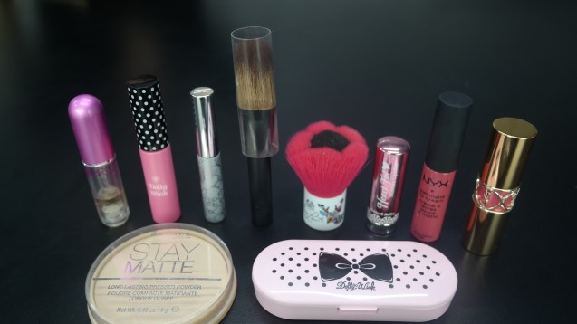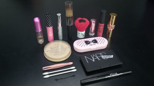 Wah ternyata makeup items yang dibawa Jean cukup lengkap. Mulai dari base hingga decorative selalu dibawa dalam stripe pouch miliknya.